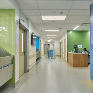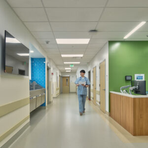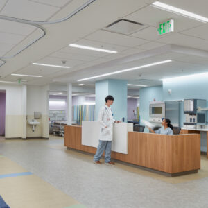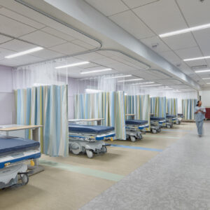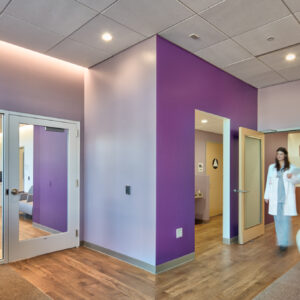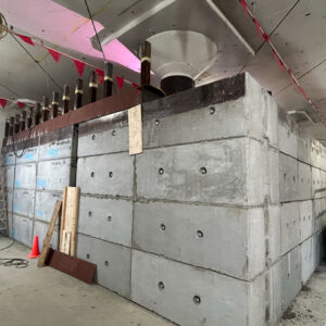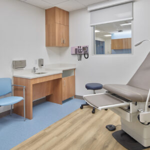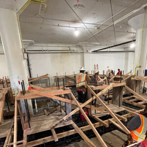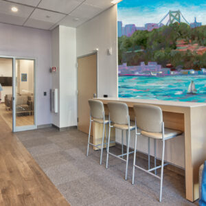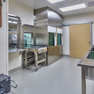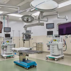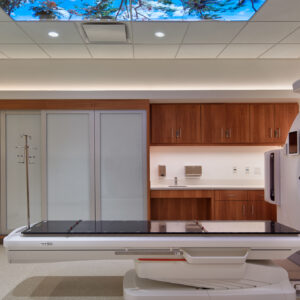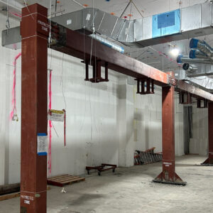 Estructure provided structural engineering services to convert 20,000 sf of unoccupied cold-shell space to a state-of-the art ambulatory surgery center. The new facility includes a linear accelerator suite, a CT suite, three operating rooms, a general procedure room and associated support spaces. The linac is housed inside a 4-foot-thick concrete vault structure (designed by Nelco) supported on large grade beams with micropiles to prevent new load on existing building foundations. The tall story height allowed for two new air handling units to be suspended above the ceiling on steel platforms with catwalks. The design team developed creative solutions to limit the transmission of noise and vibrations from the second-floor gym to the operating and procedure rooms below. These included floor-mounted steel portal frames to support surgical booms, a spring-isolated ceiling system, and custom detailing of full-height partitions with neoprene isolation.