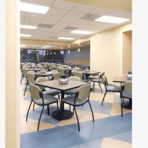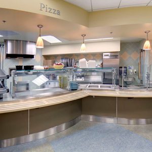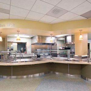 The project was completed in two phases to provide for continued service. The first phase included the demolition of 7,000 sf of existing materials management, maintenance and laundry space in order to accommodate a new kitchen, dishwashing, toilets, EVS and cold storage in the basement. The second phase demolished the approximately 8,000 sf existing kitchen and dining area to create a new servery/cafeteria and dining room on the first floor. Estructure worked closely with the architect and contractor to create a demolition and replacement plan that did not affect the kitchen operations. Construction cost $12 million.