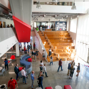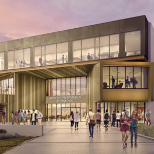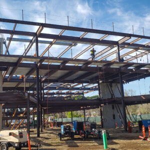 Estructure performed structural and seismic peer review of the new 84,000 square-foot Lynda and Stewart Resnick Student Union at California State University, Fresno. The building, designed by HED Architecture, includes a grand interior staircase that serves as a gathering space for students. The building’s seismic force resisting system, designed by Miyamoto International, consists of 3-story tall precast insulated concrete panels at the building exterior. The panels were fabricated off-site, lifted into place and connected to steel framing. The $60 million building is LEED Gold and has rooftop solar panels that offset one quarter of the building load. It opened to students and visitors in October 2022.