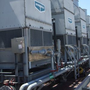 Two projects were completed to create a new infrastructure hub on the rooftop of UCSF Medical Center. Two large chillers and four cooling towers were installed on customized structural steel platforms. The projects also included modifications to piping systems and electrical upgrades.