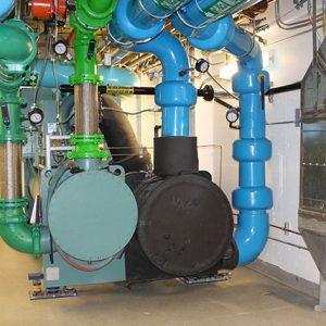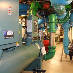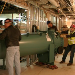 This $5.7 million project included the replacement of old, inefficient 385-ton steam-driven absorption chillers with a much larger 600-ton electric centrifugal chiller and upgrade of the chilled water distribution system to both Moffitt and Long hospitals. The multi-phase installation required close coordination and planning to mitigate the impact of shutdowns, maintain uninterrupted services, and to physically fit the new piping and equipment in the available space. BIM modeling was effectively used to plan and coordinate the design prior to construction. The new system saves more than 65m kBtu of energy per year and the project earned a $757,000 energy efficiency award from PG&E, as well as a 2013 Higher Education Energy Efficiency and Sustainability Best Practice Award in the HVAC Retrofit category.